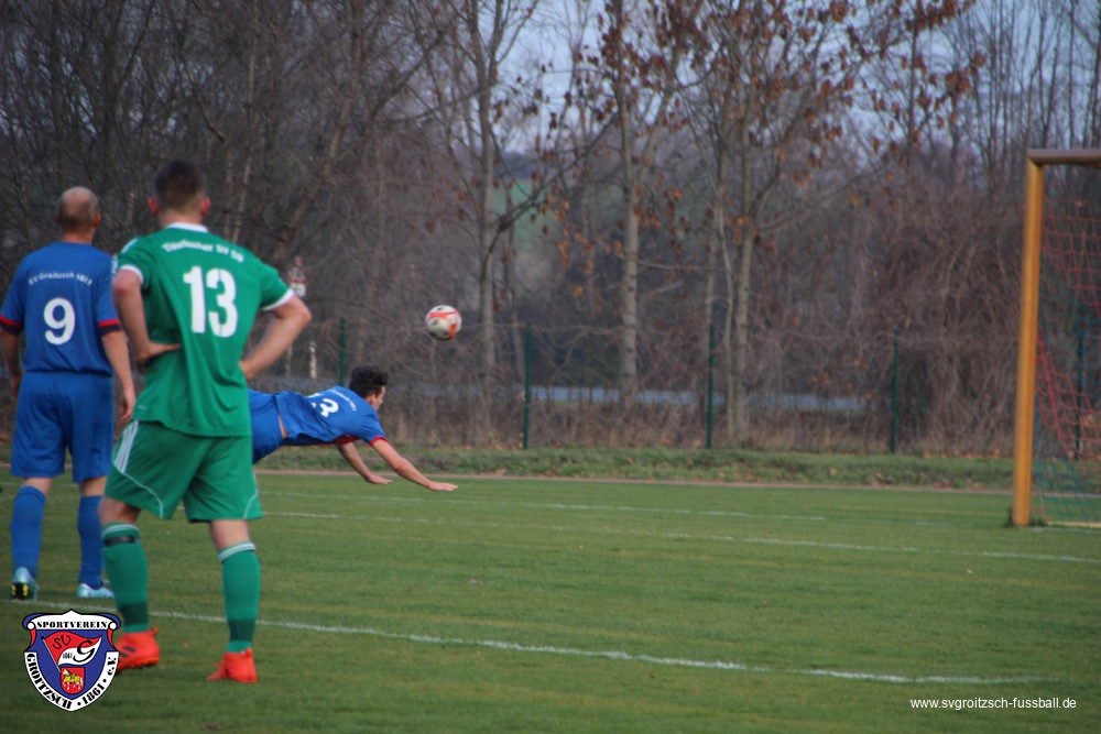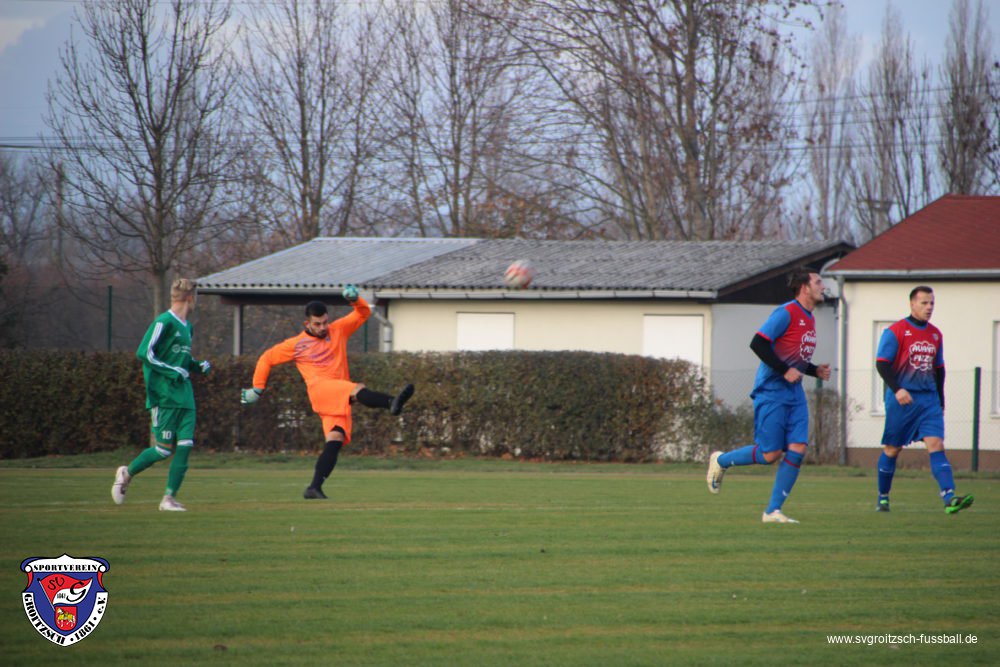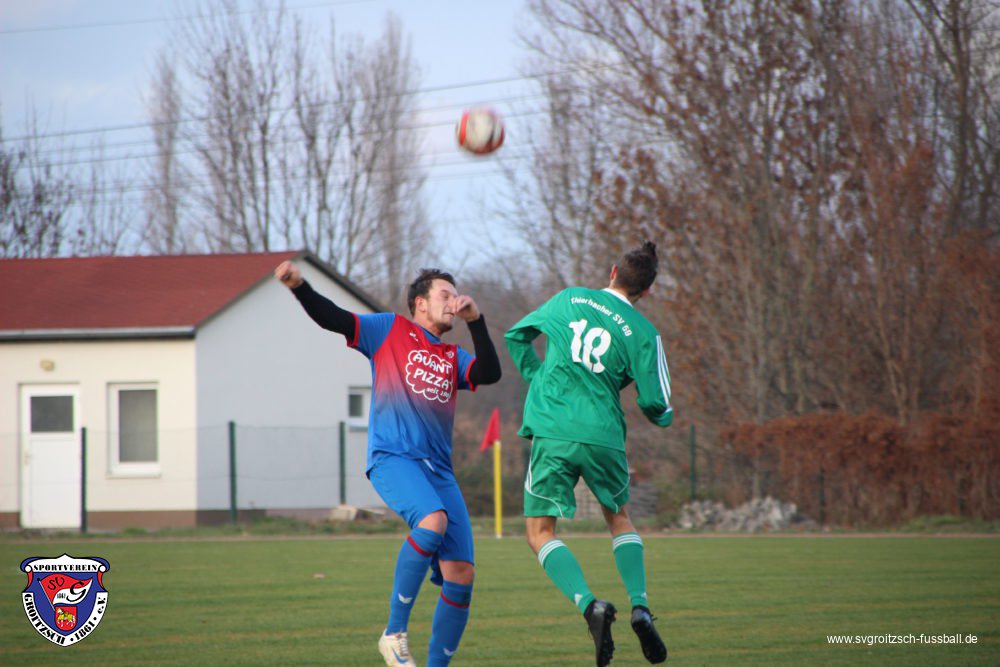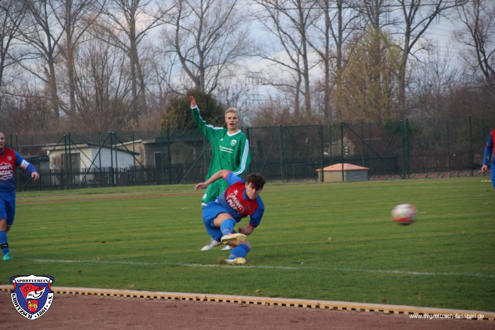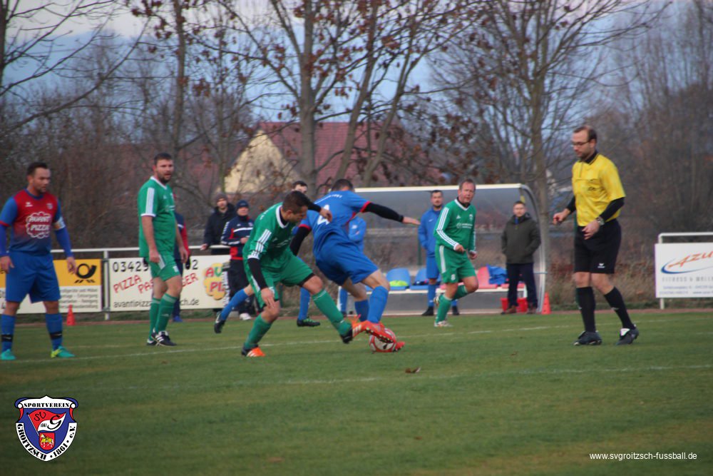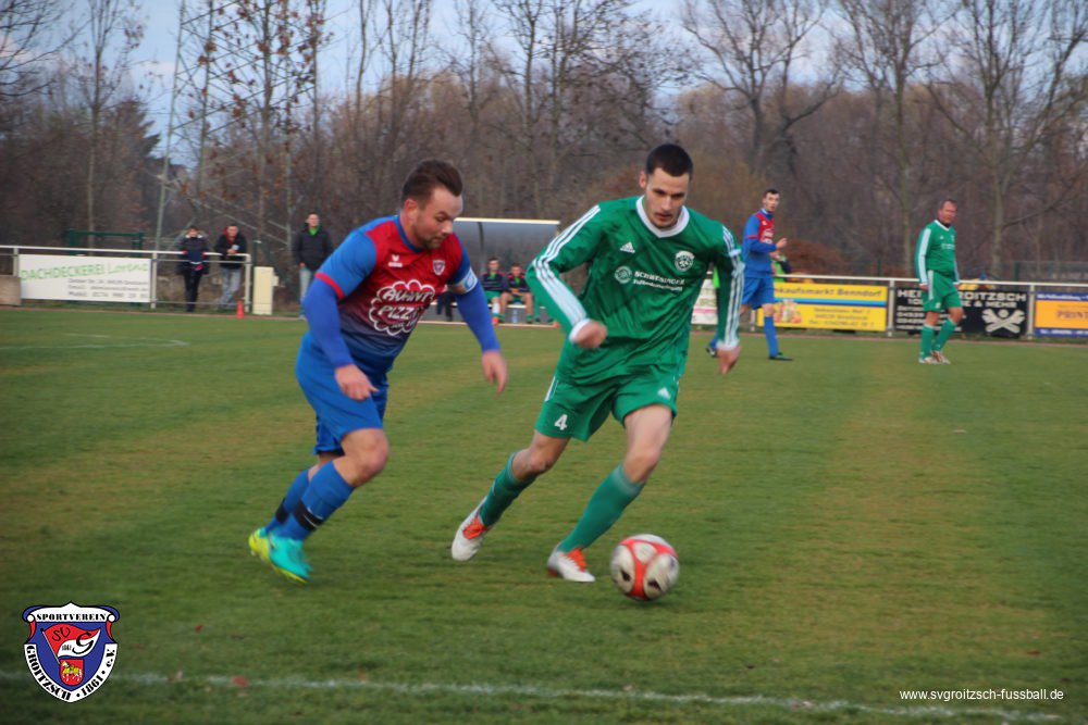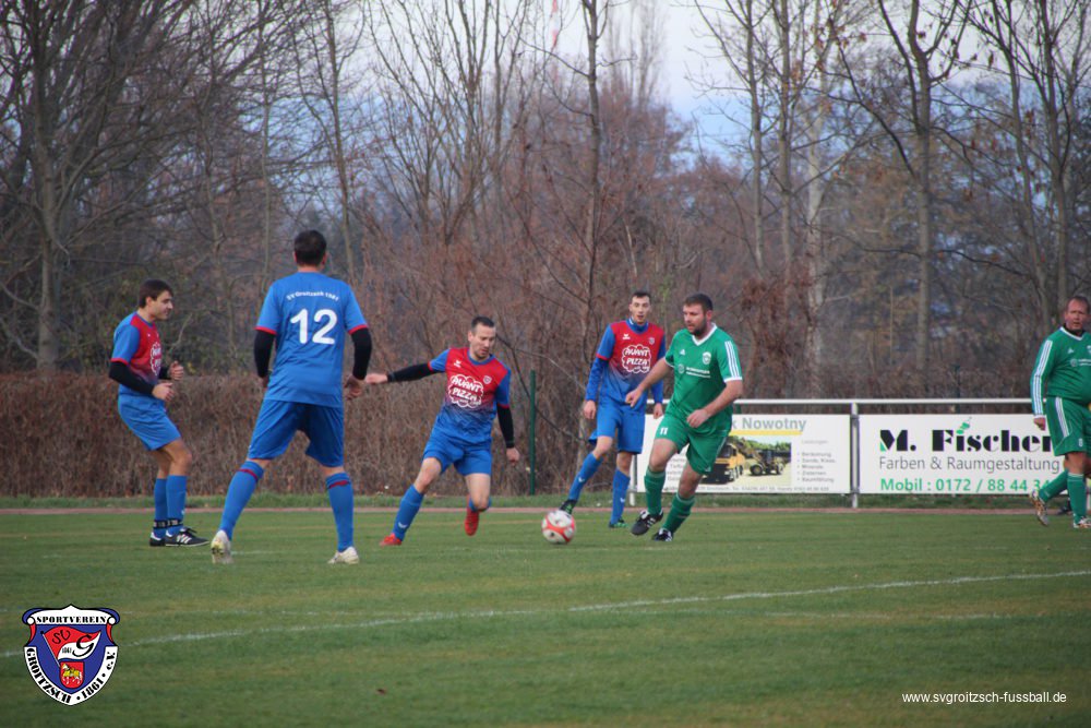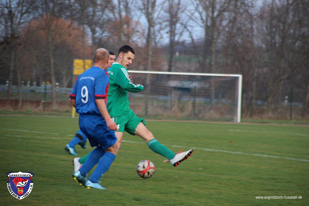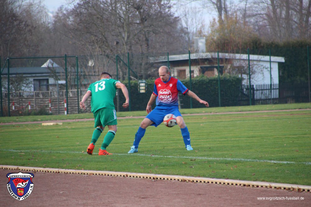 Die Heimelf startete fulminant und erarbeitete sich klare Feld- und Chancenvorteile. Thierbach hatte nichts zu melden und die erste 100%-ige Chance hatte nach einem Foul-Elfmeter André Weidlich. Doch diesem versagten in der 5. Minute die Nerven und der Gäste-Hüter hält diesen. Unbeirrt geht es für die Schusterstädter weiter. Quasi Chancen im Minutentakt und in der 8. Minute war es soweit. Nach einer Ecke, Kopfball Paule – Hüter hält, Alu Schuss – Hüter hält, aber Charly Weiß steht bereit und trifft zum 1:0. Weiter rollte der Groitzscher Express und der beste Thierbacher stand auch noch dummerweise im Tor. Dieser hielt zum Teil unhaltbare und machte das Spiel seines Lebens. Paul Dittrich erhöhte dann in der 23. Minute zum 2:0 und krönte damit seine zum Teil sehr guten Leistungen der vergangenen Spiele. Unser Paule scheint wieder der alte zu sein und ist eine echte Stütze im Moment. Ab dem 2:0 schaltete die Heimelf unerklärlicherweise wieder einen Gang zurück und Thierbach konnte sich hin und wieder befreien.